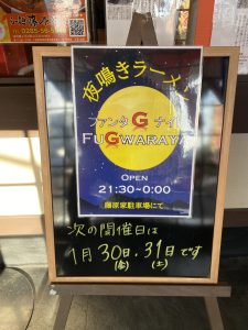 お詫びm(__)m 2026年1月30日 お知らせ fujiwaraya_adm 本日、明日のpm21時30分〜am 0時まで行う予定でした、ファンタGナイト fuGwaraya〜夜鳴きらー麺〜ですが、当店の都合により中止とさせていただきます。 報告が遅くなりましたがよろしくお願い致します。m(__)m らー麺 藤原家 店主 http://ramen-fujiwaraya.com/